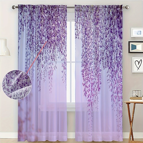 Tende minimaliste nordiche con fiori botanici, set da 2 pannelli, in poliestere con passante per asta, drappeggi floreali per camera da letto, soggiorno, decorazione per la casa, regalo per le vacanze