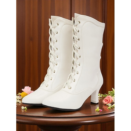 stivali da donna rossi e neri con lacci in stile vittoriano anni '20, alti fino al polpaccio – scarpe in stile edoardiano steampunk retrò per cosplay, teatro e feste Gatsby
