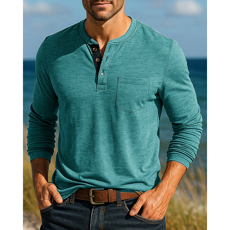 Men's Casual Shirt Hiking top Henley Shirt Long Sleeve Top Outdoor Breathable Cotton Black White Army Green Tennis Golf Running