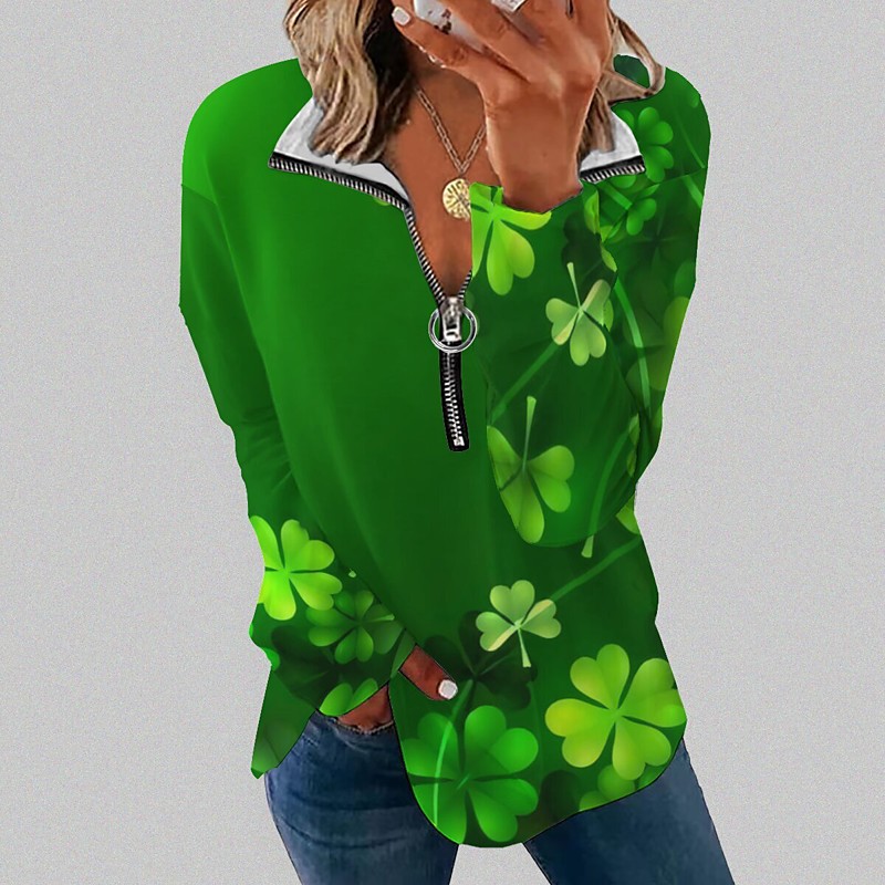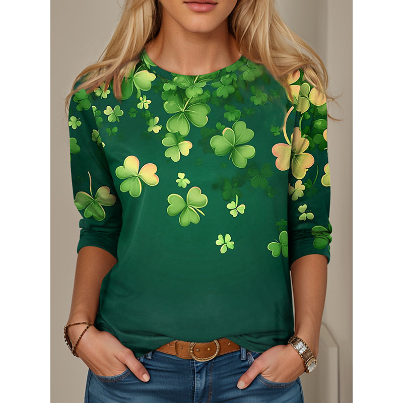St. Paddy's Day St. Patrick's Day Women's T Shirt Leaf St. Patrick's Day Basic Long Sleeve Round Neck Long Tops Holiday Weekend Print Grass Green Black Light Green Army Green Red Fall Winter
