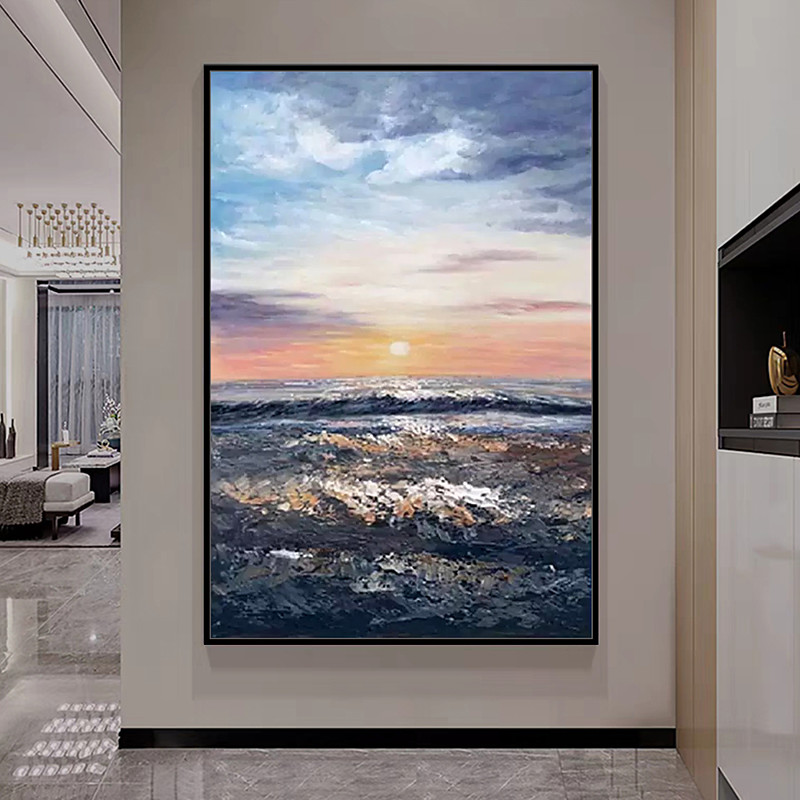 Mintura Handmade Sunrise Sea View Oil Paintings On Canvas Wall Art Decoration Modern Picture For Home Decor Rolled Frameless Unstretched Painting