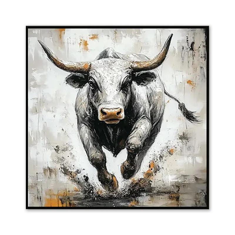 Handmade Oil Painting Acrylic Canvas Wall Art Decoration Animal Oil Painting Black-and-White Running Bull for Home Office Hotel Club Decor Rolled Frameless Unstretched Painting