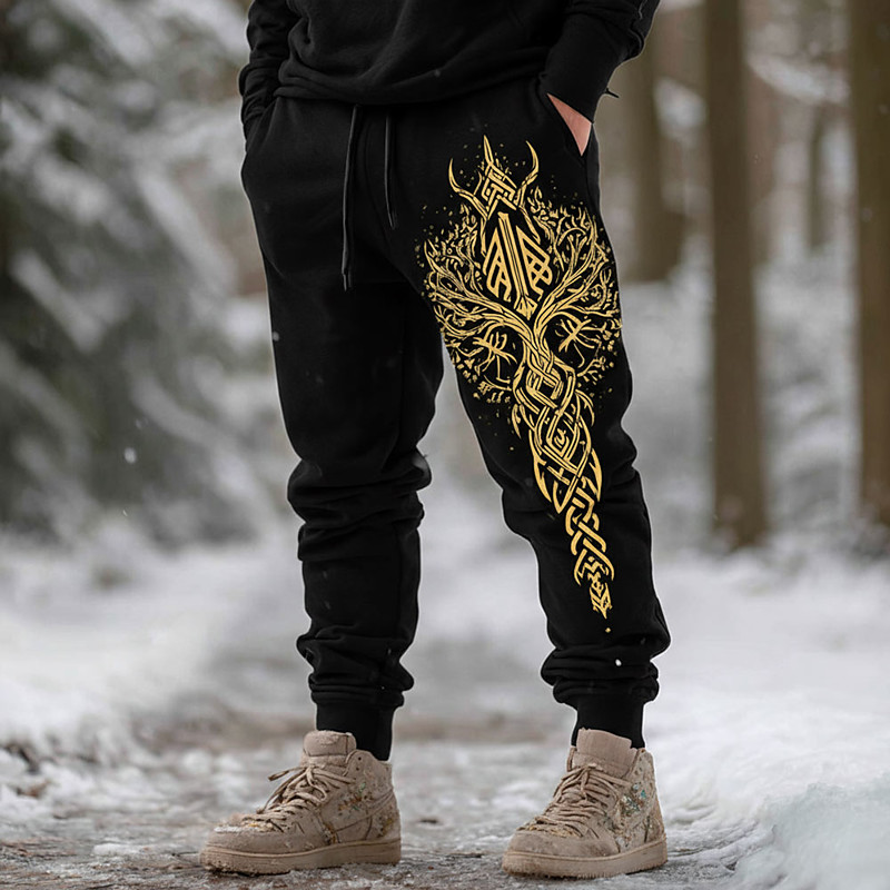 Men's Viking Tree Of Life Celtic Art Sweatpants Joggers Trousers Mid Waist Drawstring Elastic Waist Vintage Retro Outdoor Camping Hiking Hunting Athletic Sweatpants with Pockets Fall Winter 3D Print