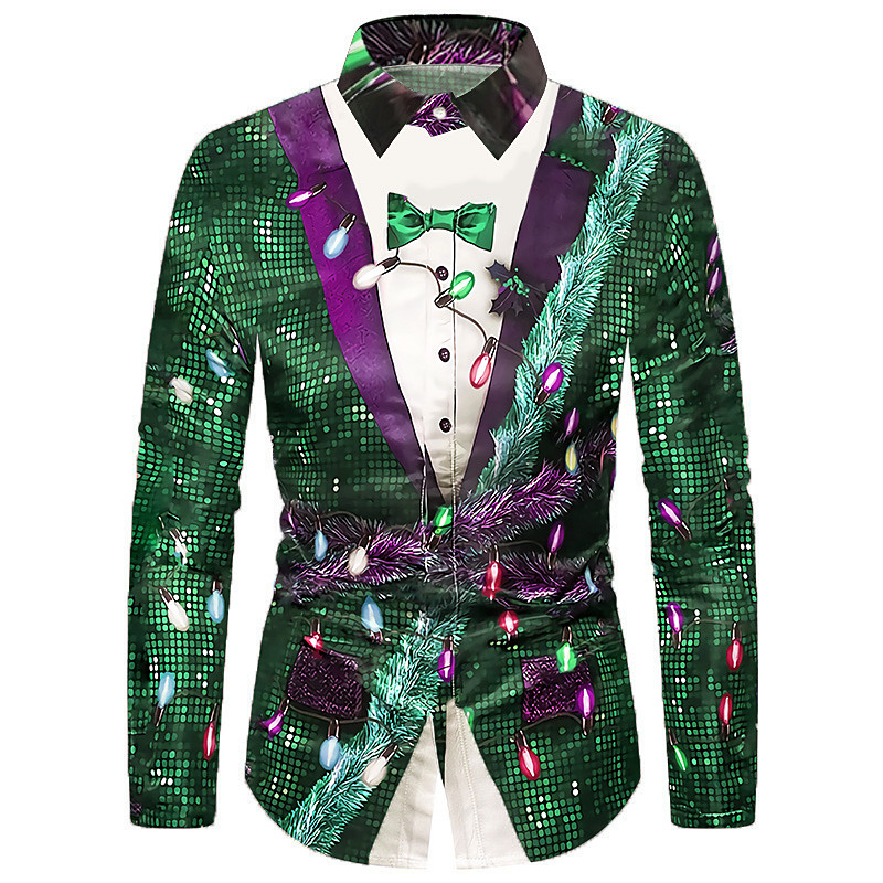 Men's Ugly Christmas Shirt Long Sleeve Shirt Turndown Christmas Street 3D Print Red Blue Purple Green Print Button-Down Clothing Apparel Fashion Designer Casual Soft