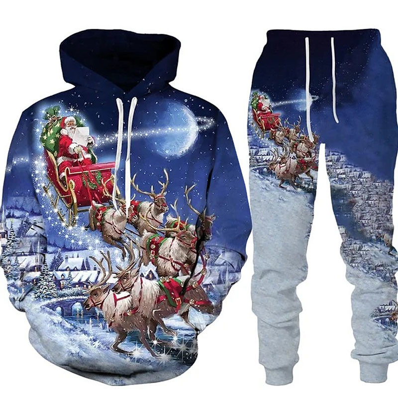 Christmas Men's Santa Claus 3D Hoodies Tracksuit Hoodies Set Red green Black White Red Navy Blue Hooded Graphic Santa Claus Snowman 2 Piece Print Sports Outdoor Casual 3D Print Streetwear Designer
