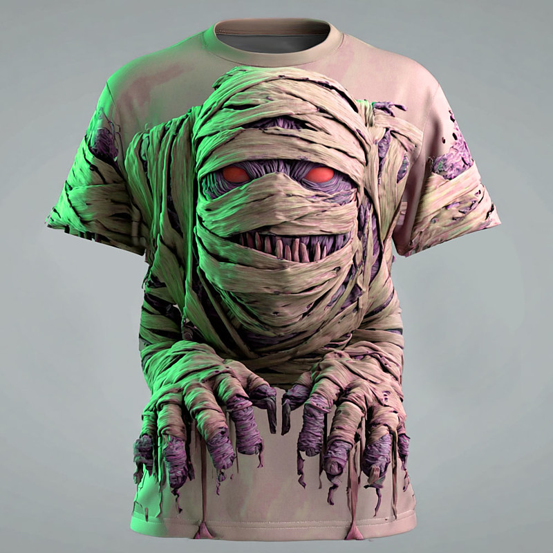 Halloween Men's Optical Illusion Zombies Mummy T Shirt Short Sleeve T shirt 3D Print Crew Neck Shirt Exaggerated Designer Horror Party Street Holiday Pink Blue Green Summer Spring All Seasons