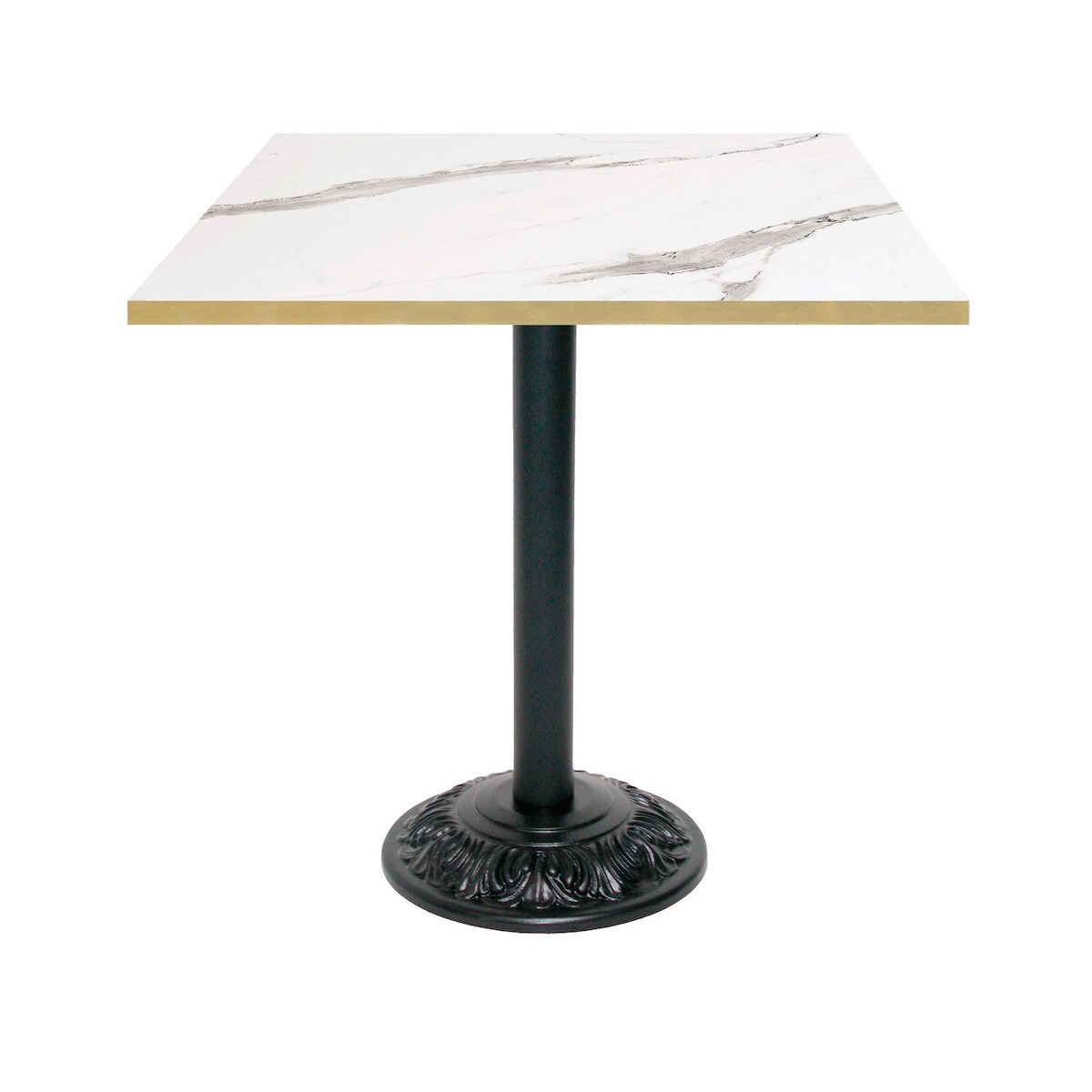 Restootab Tisch Bistrot-Stil 70x70cm - Modell weißer Marmor mit messingfarbenen Kanten