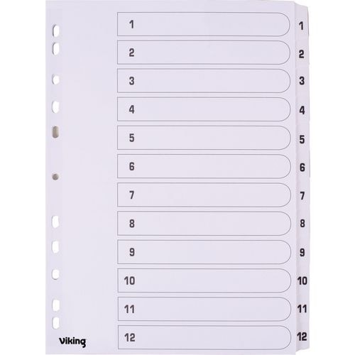 Viking Mylar 1 bis 12 Zahlenregister DIN A4 Weiß 12-teilig Pappkarton 11 Löcher