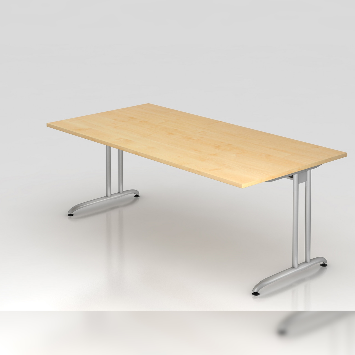 PROREGAL Schreibtisch Markku | Ahorn | BxT 200x100cm | Arbeitshöhe 72cm | höhenjustierbar 0-10 mm | C-Fuß-Gestell Silber | Bürotisch