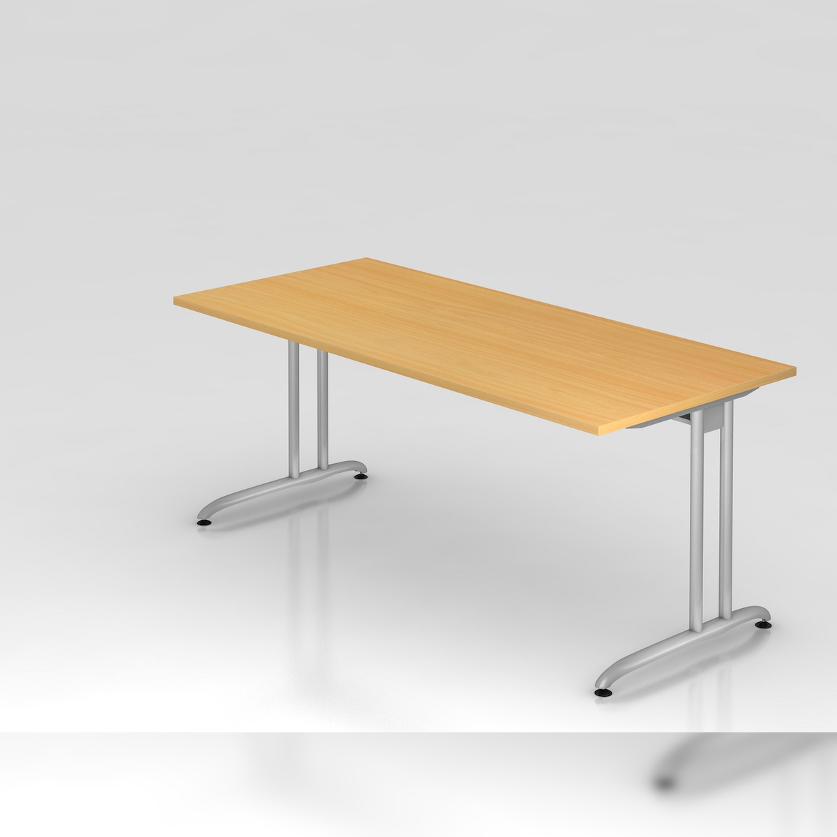 PROREGAL Schreibtisch Markku | Buche | BxT 180x80cm | Arbeitshöhe 72cm | höhenjustierbar 0-10 mm | C-Fuß-Gestell Silber | Bürotisch