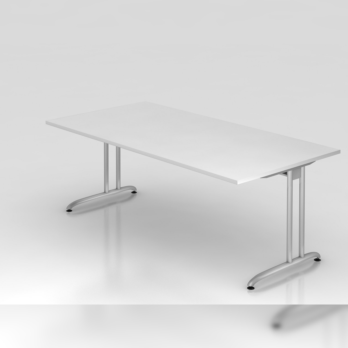 PROREGAL Schreibtisch Markku | Weiß | BxT 200x100cm | Arbeitshöhe 72cm | höhenjustierbar 0-10 mm | C-Fuß-Gestell Silber | Bürotisch