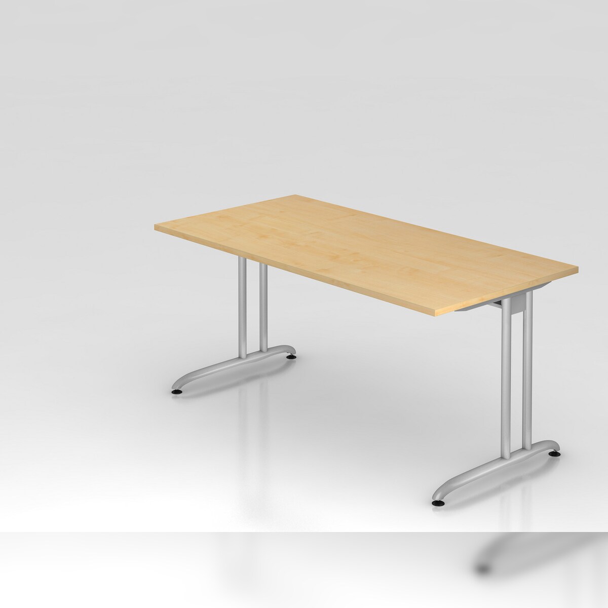 PROREGAL Schreibtisch Markku | Ahorn | BxT 160x80cm | Arbeitshöhe 72cm | höhenjustierbar 0-10 mm | C-Fuß-Gestell Silber | Bürotisch
