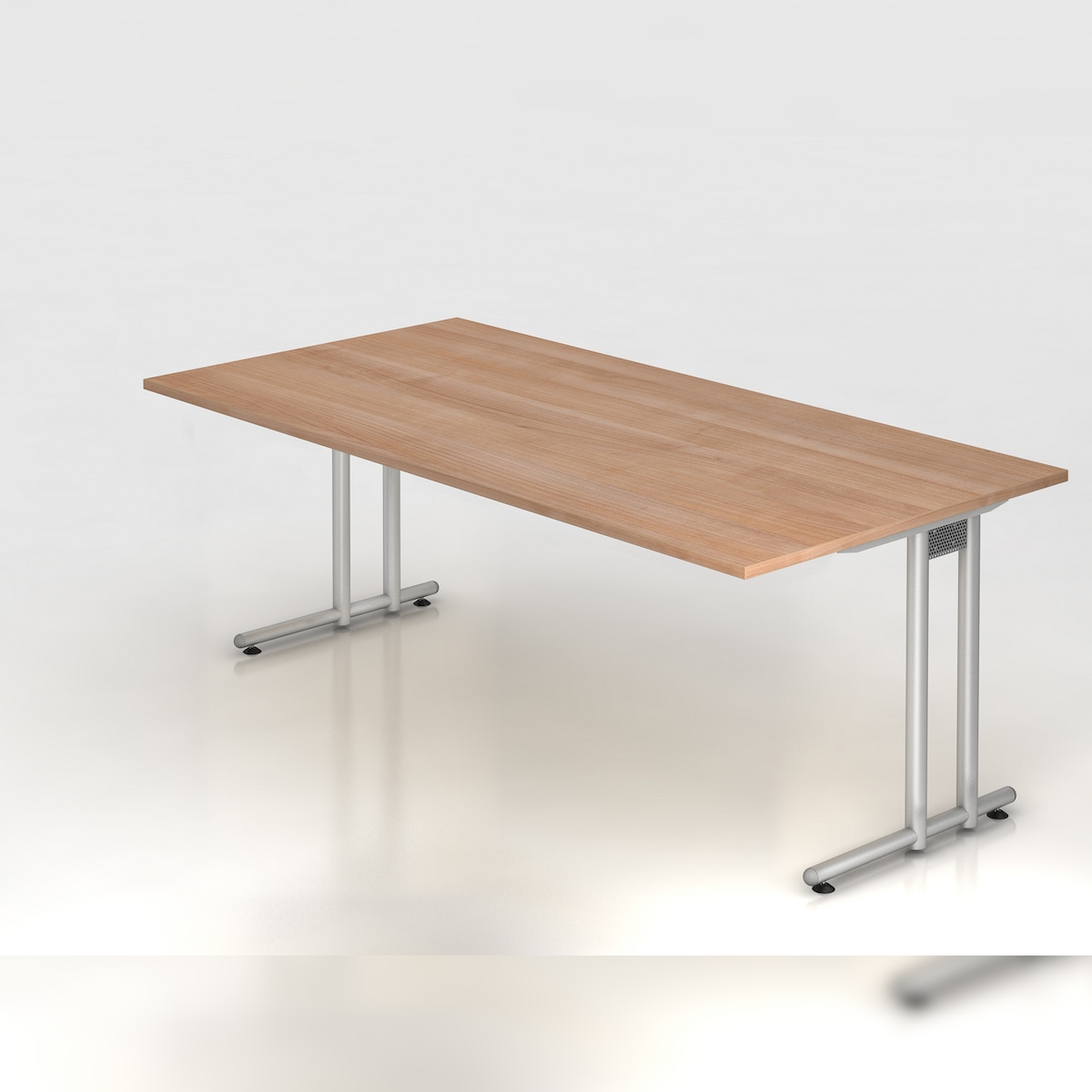 PROREGAL Schreibtisch Mauno | Nussbaum | BxT 200x100cm | Arbeitshöhe 72cm | höhenjustierbar 0-10 mm | C-Fuß-Gestell Silber | Bürotisch