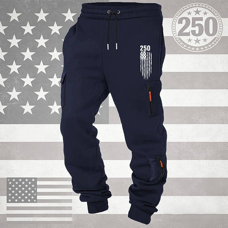 Men's Sweatpants Joggers Trousers Drawstring Pocket Elastic Waist National Flag Comfort Breathable Daily Outdoor America's 250th Anniversary Vacation Fashion Blue Black Micro-elastic