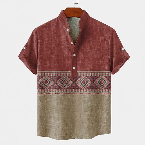 Per uomo Cowboy Camicia Camicia Western Manica Corta Vintage Retrò All'aperto Vacanza Estate Primavera Collo ripiegato Stampa 3D camicie con colletto Camicia tipo lino Albicocca