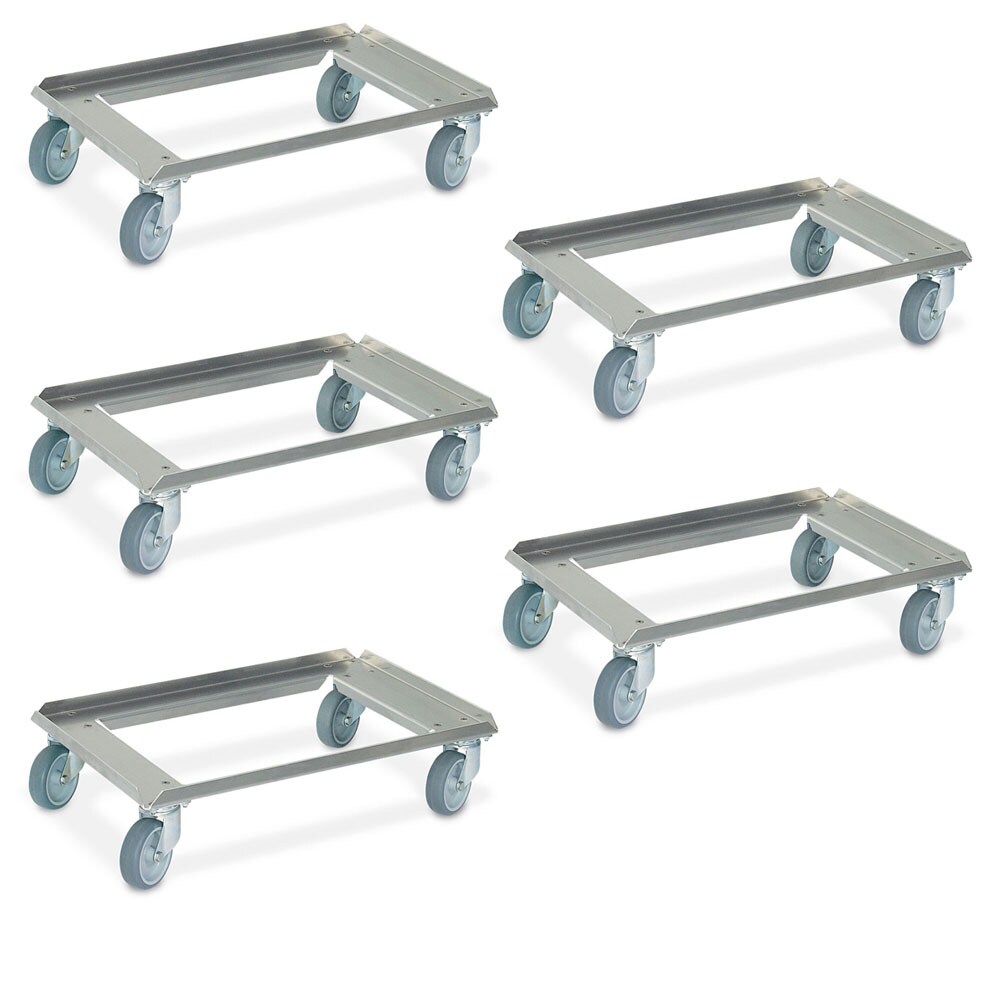 BRB 5x Logistikroller aus Alu für 600x400 mm Behälter,graue Gummiräder,offenes Deck