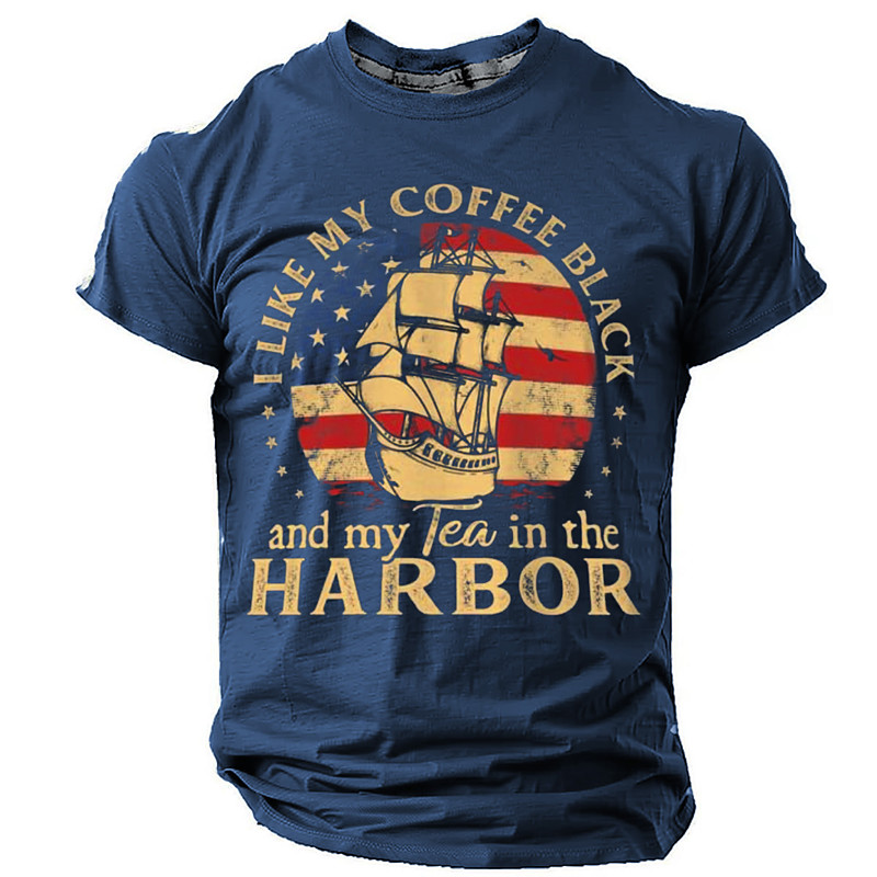 Mens Graphic T-Shirt 'I Like My Coffee Black and My Tea in the Harbor' Patriotic Short Sleeve Pun Humor