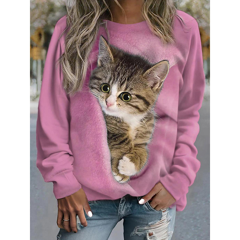 Women's Sweatshirts Graphic Animal Vintage Casual Long Sleeve Crew Neck Regular Tops Home Dailywear Casual Print Pink Blue Khaki Summer Spring Fall