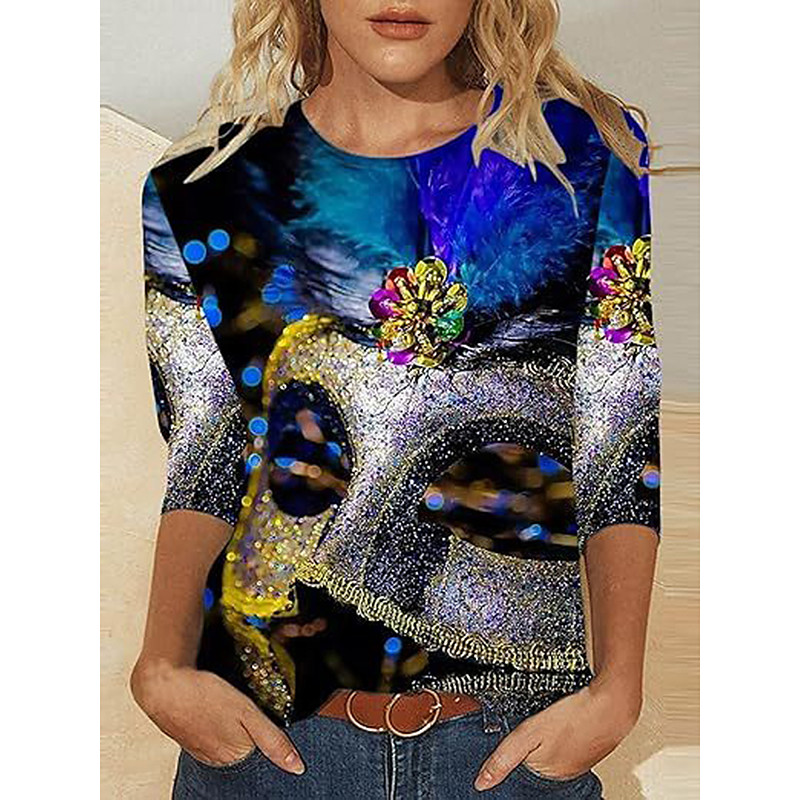 Carnival Women's T Shirt Graphic Fashion Casual Long Sleeve Crew Neck Regular Tops Daily Weekend Print Blue Black Purple Summer Spring Fall