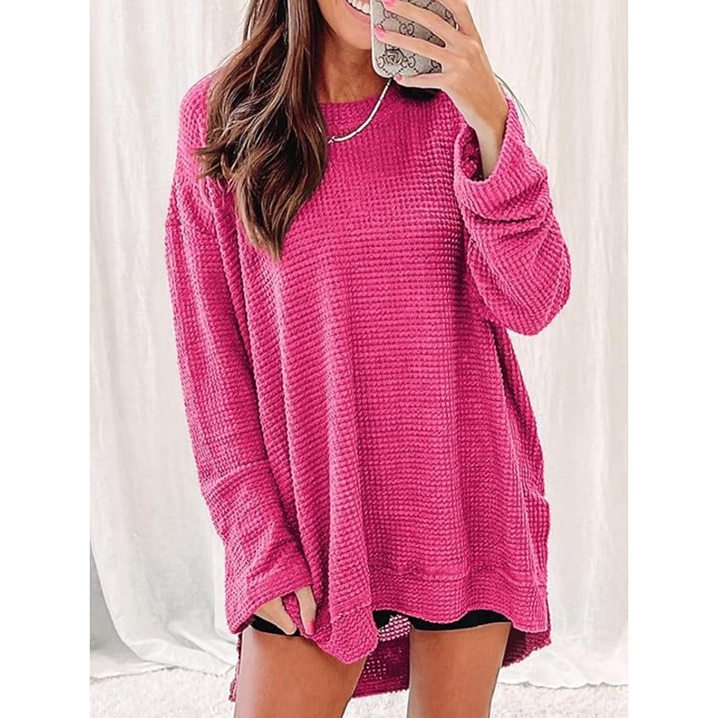 Women's Sweater Casual Soft Pure Color Ribbed Crew Neck Knitted Textured Long Sleeve Regular Tops Knit Outdoor Daily Weekend Black Pink Fall Winter