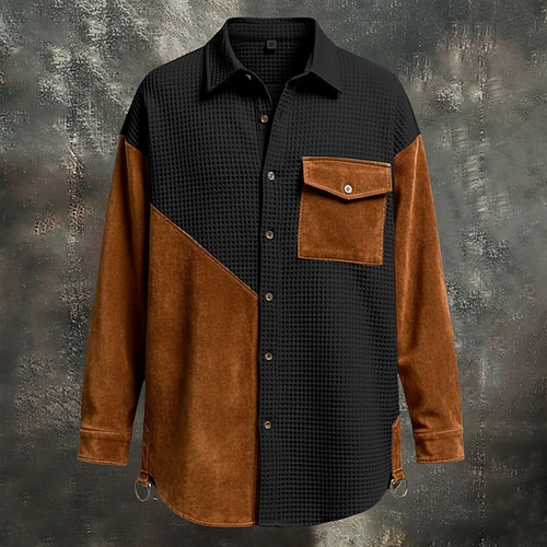 Per uomo Camicia Camicia a nido d'ape Camicia casual Camicia con colletto alla coreana Camicia con Bottoni Camicia cargo Nero Blu marino Verde Kaki Manica Lunga Geometrico Semplice Collo alla coreana