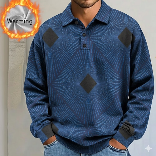 Per uomo Geometrico Astratto Polo Camicie termiche Manica Lunga Magliette polo Bavero Casual Athleisure Ferie Abbigliamento quotidiano Stampa 3D Autunno Inverno Blu Bianco Grigio