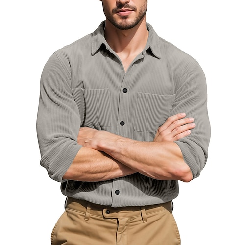 Per uomo Camicia Camicia casual Camicia di Velluto a Coste Camicia con Bottoni Nero Kaki Verde militare Grigio Manica Lunga Tinta unica Collo ripiegato Casuale All'aperto Caldo Abbigliamento Vintage