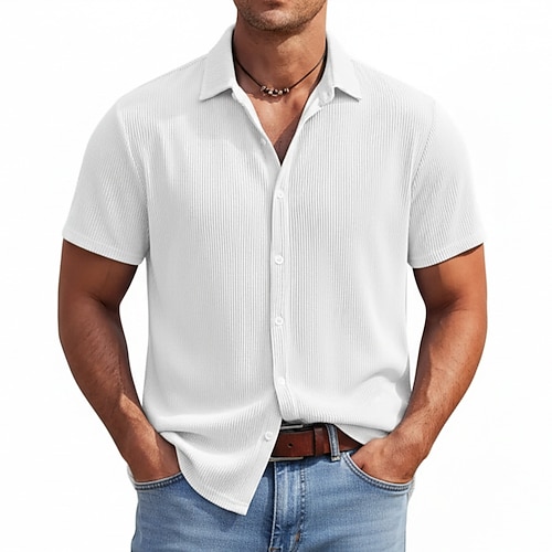 Per uomo Camicia Camicia casual Camicia di Velluto a Coste Camicia con Bottoni Nero Bianco Borgogna Blu marino Verde militare Manica Corta Semplice Colletto a Camicia Casuale Quotidiano Tasca Frontale