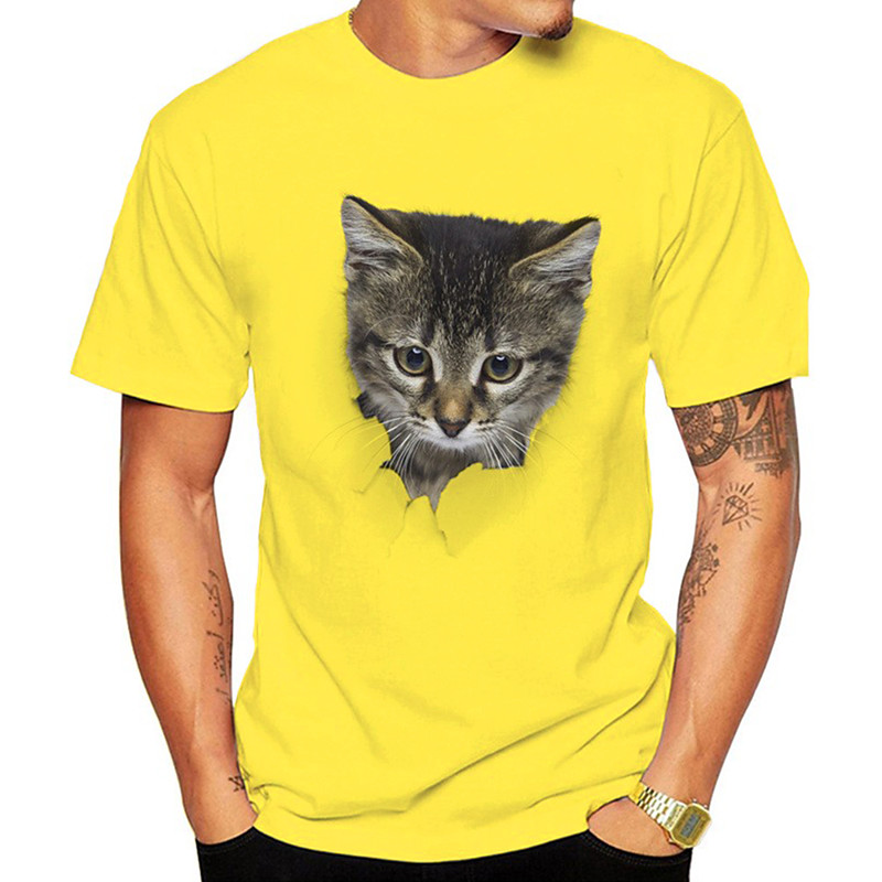Men's Cool DJ Cat Graphic T-Shirt with Headphones Sunglasses, White Short Sleeve Tee