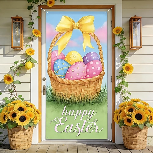 Pasqua Poster Copertura della porta Banner per esterni Uova Carino 3D Da serata Dormitorio Stanza per adolescenti Dormitorio universitario Ragazzi Man Cave Frat Bedroom Sfondi di ripresa Arredamento