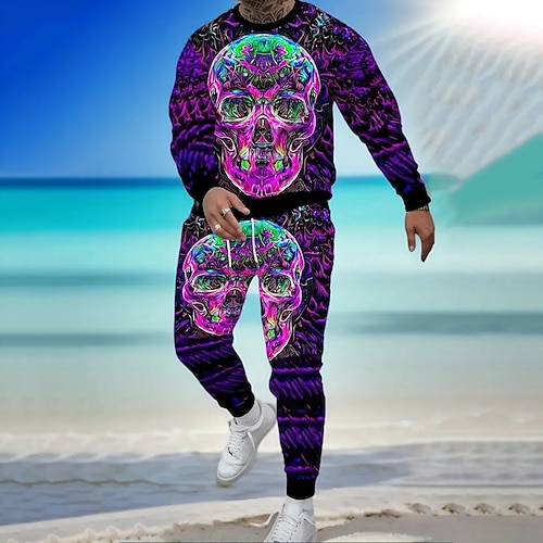 Set felpa 3D da uomo teschi 2 pezzi tuta felpa pullover maniche lunghe pantaloni lunghi collo rotondo casual quotidiano trendy street athleisure 3D stampa primavera autunno inverno viola