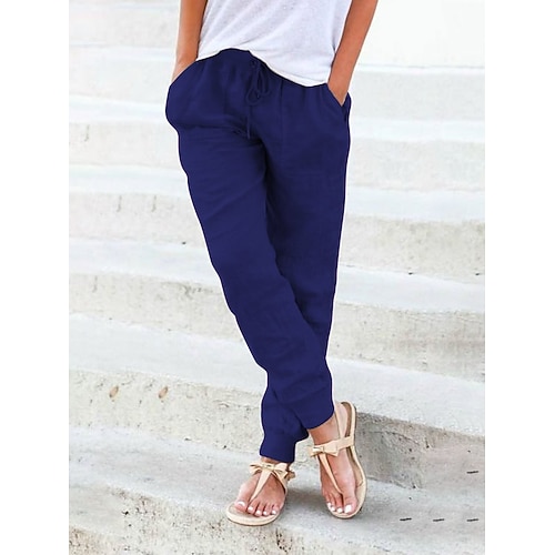 Per uomo Pantaloni di lino Pantaloni Pantaloni estivi Pantaloni di garza A cordoncino Vita elastica Gamba dritta Liscio Comfort Traspirante Lunghezza intera Interni Informale Giornaliero Sportivo
