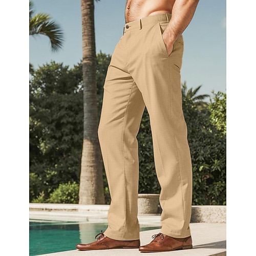 Per uomo Pantaloni di lino Pantaloni Pantaloni estivi Tasca frontale Gamba dritta Liscio Comfort Traspirante Lunghezza intera Matrimonio Ufficio Attività commerciale Di tendenza Essenziale Cachi