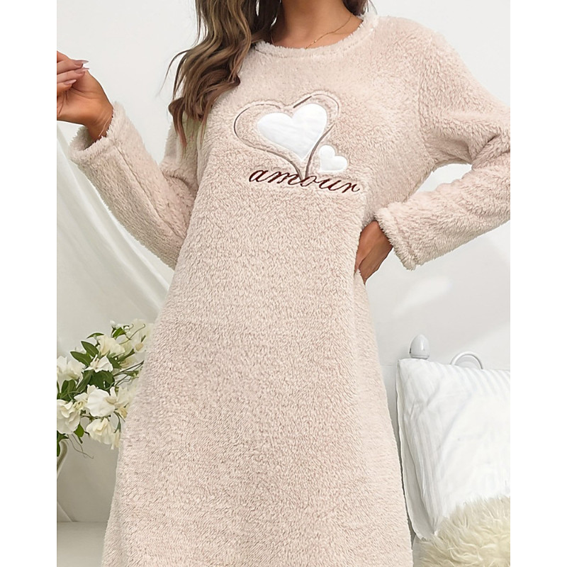 Women's Nightgown Flannel Warm Fashion Wearable Blanket Hoodie Heart Vacation Home Daily Long Sleeve Crew Neck Pink Beige Fall Winter Regular Fit