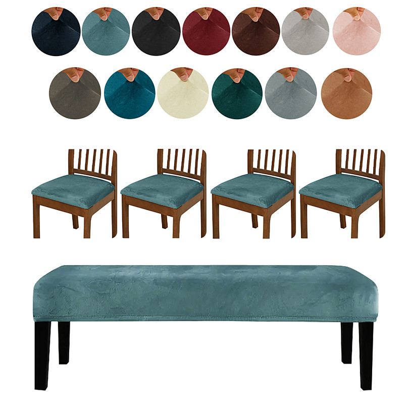 Solid Color Elastic Silver Fox Velvet Bench Covers Bench Protector Set, Non-Slip, 4 Pcs Bench Covers 1 Pc Long Bench Cover, Durable and Stylish Chair Covers