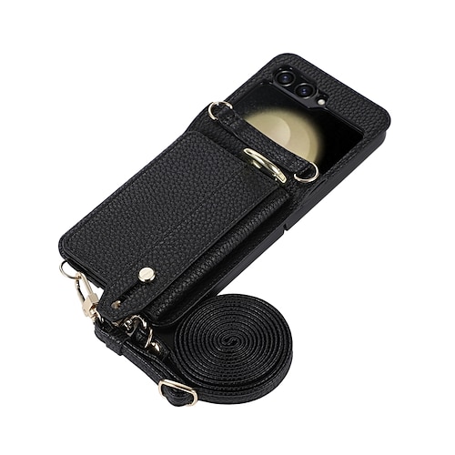 Handy Hülle Handyhüllen Für Samsung Galaxy Z Flip 7 Z Flip 6 Z Flip 5 Z Flip 4 Rückseite mit Trageriemen Ständer Kartenfach Retro TPU PU-Leder