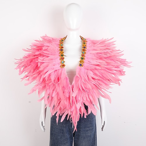 Karneval 2026 Rio Karneval Samba Zubehör Karnevals Feder Schulterwurf - Pink Orange Gelb Vibrantes Showgirl Kostüm - Mardi Gras Rave Festival Kleidung Brasilien Festival Performance Kostüm