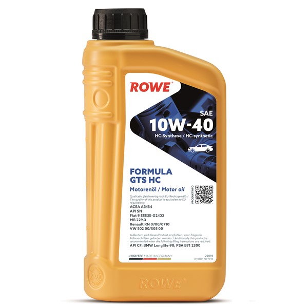 Hc 1l Moottoriöljy Rowe Hightec Formula Gts Sae 10w-40 Rowe 20093 - 1624795