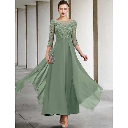 Linea ad A Lunghezza alla caviglia Vestito da Festa Abito da Cocktail Abito da invitata a nozze Abito da cerimonia per signora Manica 3/4 Collo gioiello Elegante Taglie Forti Ospite di nozze