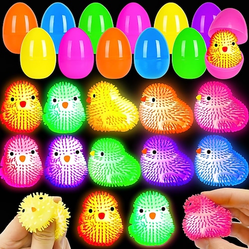 12er-Pack gefüllte Ostereier mit leuchtenden Küken-Pufferbällen, Stressabbau-Spielzeug, sensorische Quetschbälle für Kinder, Jungen und Mädchen, ideal als Osterkorbfüller, Mitbringsel für die