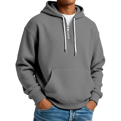 Per uomo Felpa con cappuccio Felpa con cappuccio a nido d'ape Felpa con cappuccio e zip corta Blu marino Grigio chiaro Grigio scuro Azzurro Con Cappuccio Semplice Tasca a marsupio Testurizzato Sport