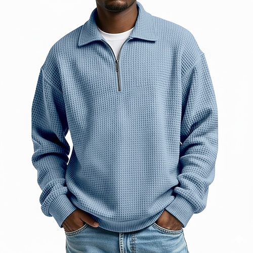 Per uomo Maglia Felpa a nido d'ape Maglione Felpa con zip corta Aalbicocca Nero Bianco Verde chiaro Borgogna Colletto Mao Semplice Tasca a marsupio Testurizzato Casuale Quotidiano Sport Outdoor
