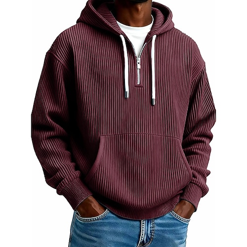 Per uomo Felpa con cappuccio Velluto a coste Felpa con cappuccio e zip corta Aalbicocca Rosso bordeaux Nero Bianco Blu marino Con Cappuccio Semplice Tasca a marsupio Testurizzato Casuale Quotidiano