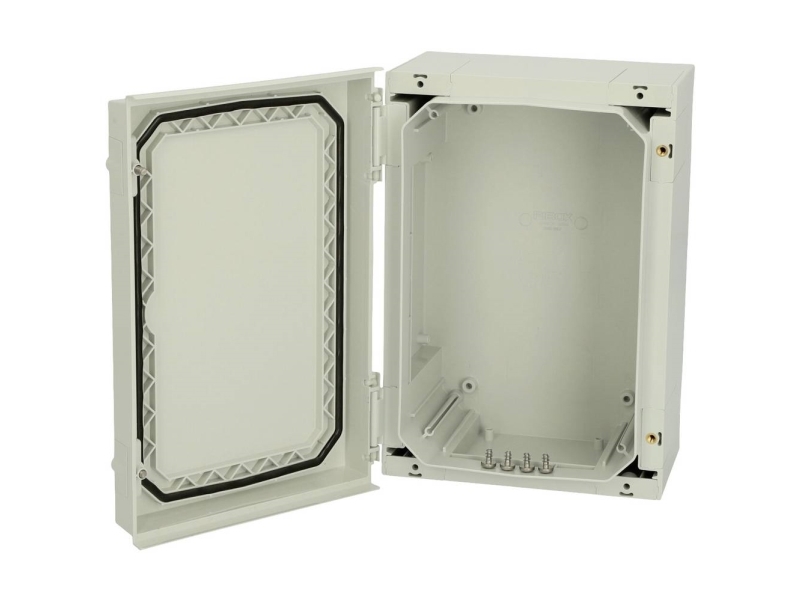 FIBOX DIN-skinnekasse HxBxD 280 x 380 x 130 mm komplet med sidehængslet låg 2 x 19M IP65
