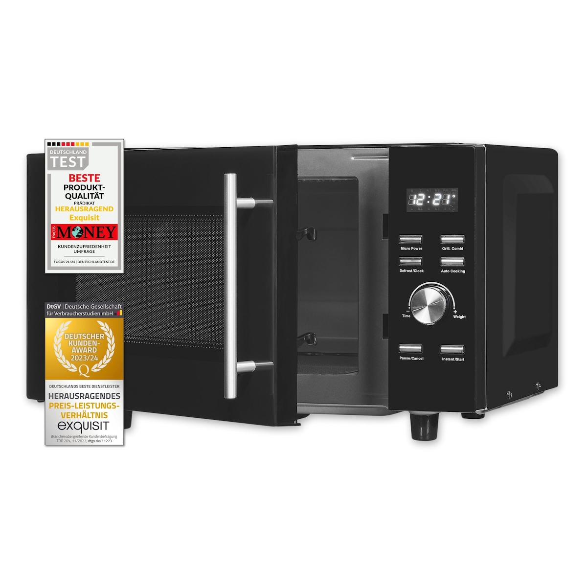 Exquisit Mikrowelle MW8023-F-240DIG schwarz | Grill | max. 1000 W | Garraum 23 l | Schwarz Front