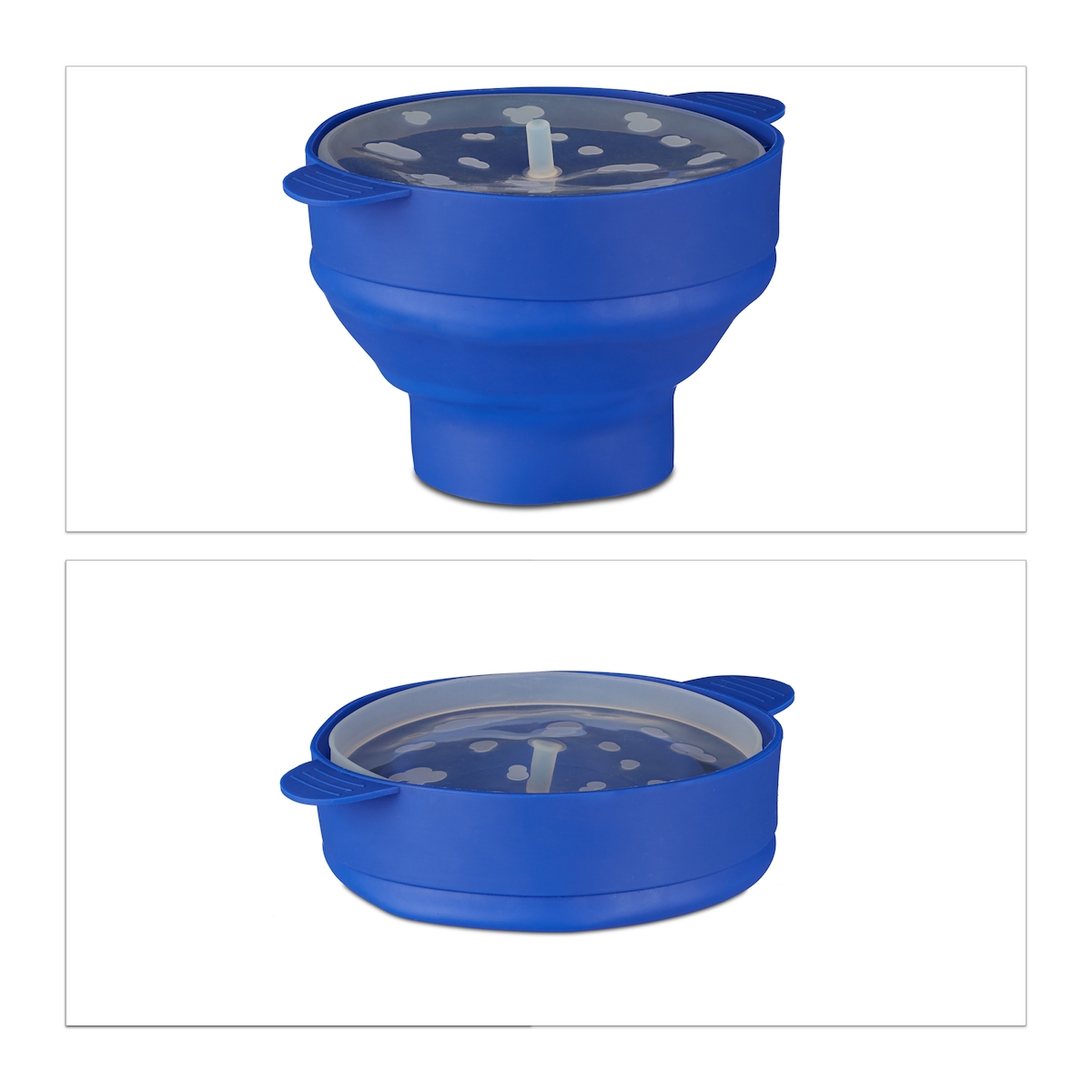 Relaxdays Popcorn Maker Silikon für Mikrowelle, zusammenfaltbarer Popcorn Popper, Zubereitung ohne Öl, BPA-frei, blau