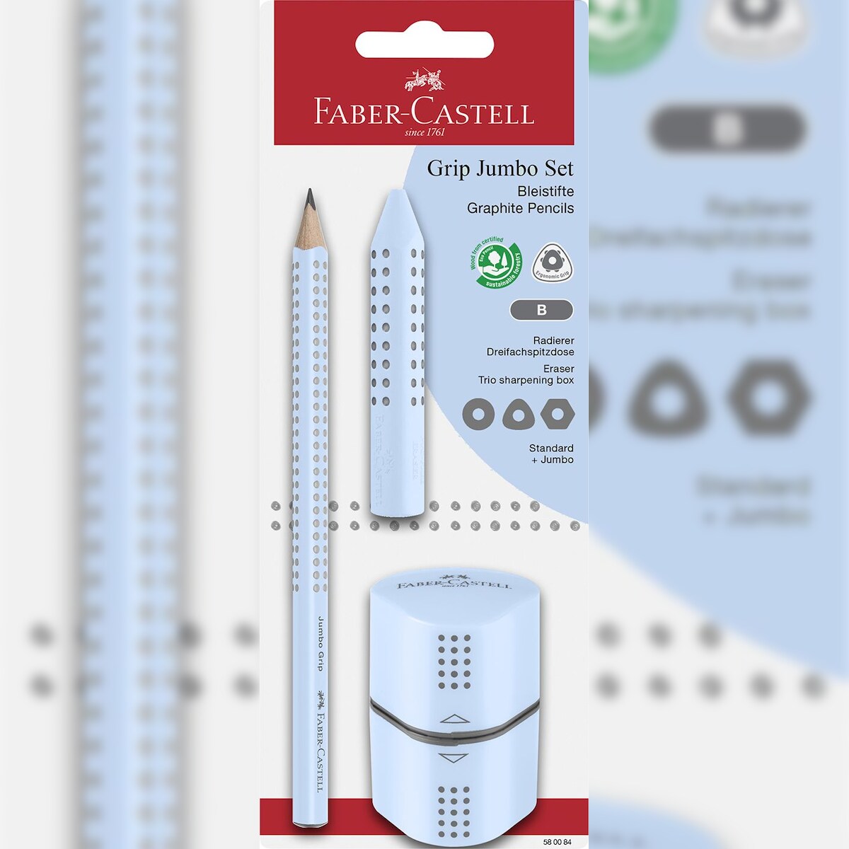 FABER-CASTELL 580084 Bleistift-Set Jumbo GRIP - 3-tlg., B, sky blue, Blister