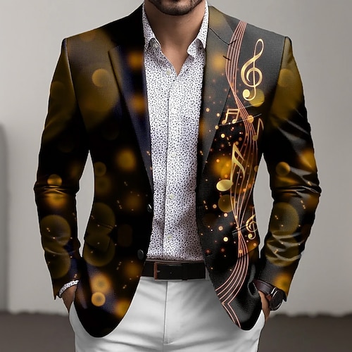 Per uomo Note Giacca blazer Cappotto Di tendenza Confortevole Traspirante Artistico Casual Quotidiano Abbigliamento da sera Stampa 3D Bottoni Multi-tasche Primavera Autunno Inverno Dentellato