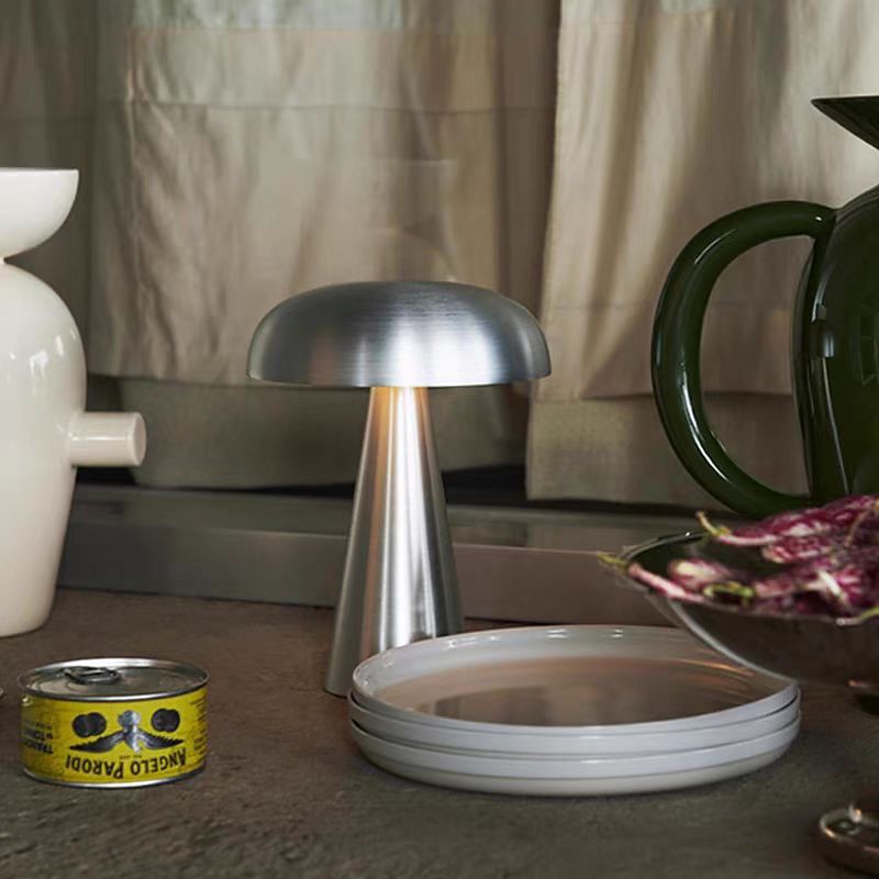 Metal Mushroom Table Lamp Cordless Touch Dimmable USB Table Light Home Beside LED Decorativas Lamp