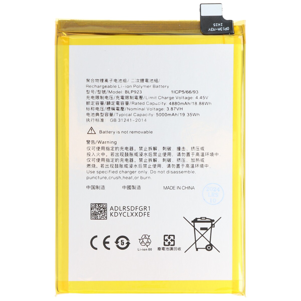 AccuCell Akku passend für OPPO A58 5G, Li-Polymer, 3,87V, 5000mAh, 19,35Wh, ohne Werkzeug